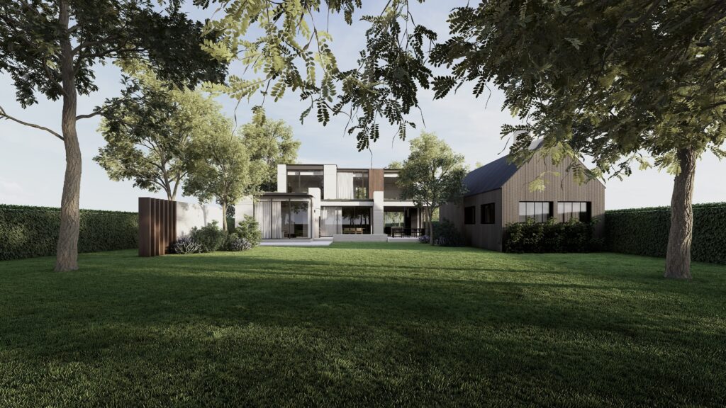 Het ontwerp zoekt een vloeiende overgang tussen binnen en buiten, het vele lichtinval, doorzichten en een sterke relatie met het omgeving. De woning wordt opgebouwd uit leesbare volumes die elk inspelen op oriëntatie, functie en beleving.